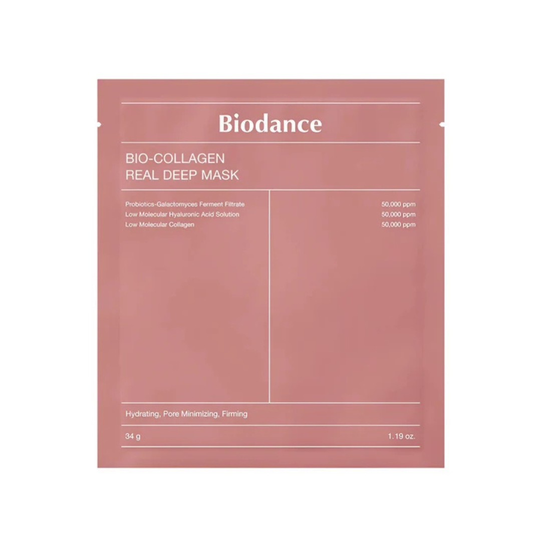 Biodance Bio Collagen Real Deep Mask is a deeply hydrating and firming hydrogel mask designed to improve skin texture, elasticity, and radiance. Formulated with low molecular weight collagen, oligo hyaluronic acid, and probiotics, this multi-purpose mask delivers intensive moisture while helping refine pores and strengthen the skin barrier. Suitable for all skin types, including sensitive skin, it can be used as a daytime treatment or an overnight mask for maximum glow.