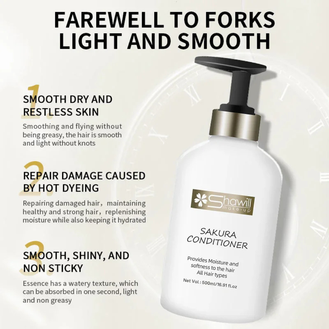 Shawill Sakura Conditioner Provides Moisture & Softness is a lightweight, nourishing hair conditioner enriched with Sakura (Cherry Blossom) extract. Designed for all hair types, it helps restore hydration, softness, and shine while leaving hair smooth, manageable, and beautifully refreshed.